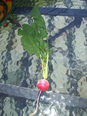 It was a tasty little radish though! you don't think I'd let a little squirrel or rabbit stop me from eating my first home grown radish do you? of course there wasn't much left after cutting away the teeth marks!
